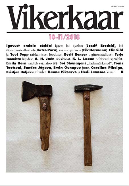 Igavust endale otsida! Igavus kui ajaaken (Jossif Brodski), kui liigse tähendusnõudluse saadus (Katre Pärn), kui vastupanuviis (Eik Hermann). Elin Sild ja Tuul Sepp raiskamisest looduses. Berit Renser diginomaadidest. Terje Toomistu nõukogude hipidest, Amaranta Heredia Jaén seksitööst. Karl Lembit Laane riigireform rahvaesindajate loosimisega. Emily Kern vaidleb esiajaloo üle. Sei Shōnagoni “Padjamärkmed”, Tõnis Tootseni, Sandra Jõgeva, Ervin Õunapuu jutte. Carolina Pihelga, Kristjan Haljaku, Igor Kotjuhi, Jüri Kolgi, Joosep Vesselovi ja Giuseppe Ungaretti luulet. Eik Hermann Hanna Piksarve ja Hedi Jaansoo kunstist. Margus Ott kasutusest. Maia Tammjärv arvustab Urmo Jaanimäge, Ave Taavet Taavet Kaset, Andrus Kasemaa Kaur Riismaad, Mariliin Vassenin Triin Pajat ja Berk Vaher Pikri kalambuure.