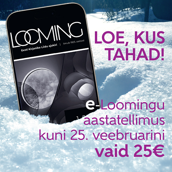 INIMENE ja MASINAD. Triinu Pakk ludiitidest, Hegely Klaus vabrikulastest, Johanna Ross nõukogude tütarlapse kolmest K-st, Oliver Laas masinkultuurist, Anti Saar otstarbetutest automaatidest, Märt Väljataga homo faber’ist, Danielle Carr mõttekontrolli masinaist, Arko Olesk teadusajakirjanduse vastustuskoormast. Byroni, Rooste, Riste Sofie Kääri, Raija Katarina Heikkilä luulet, Andri Krasnjaštšõhhi, Toomas Jürgensi, Piret Põldveri proosat. VKG ja noor kunst.