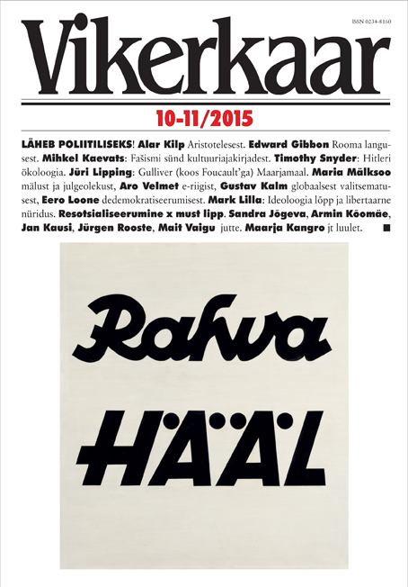 Aristoteles. Poliitika. Tlk ja komment. Anne Lill. Tartu: Ilmamaa, 2015. 471 lk. 29.65 €.