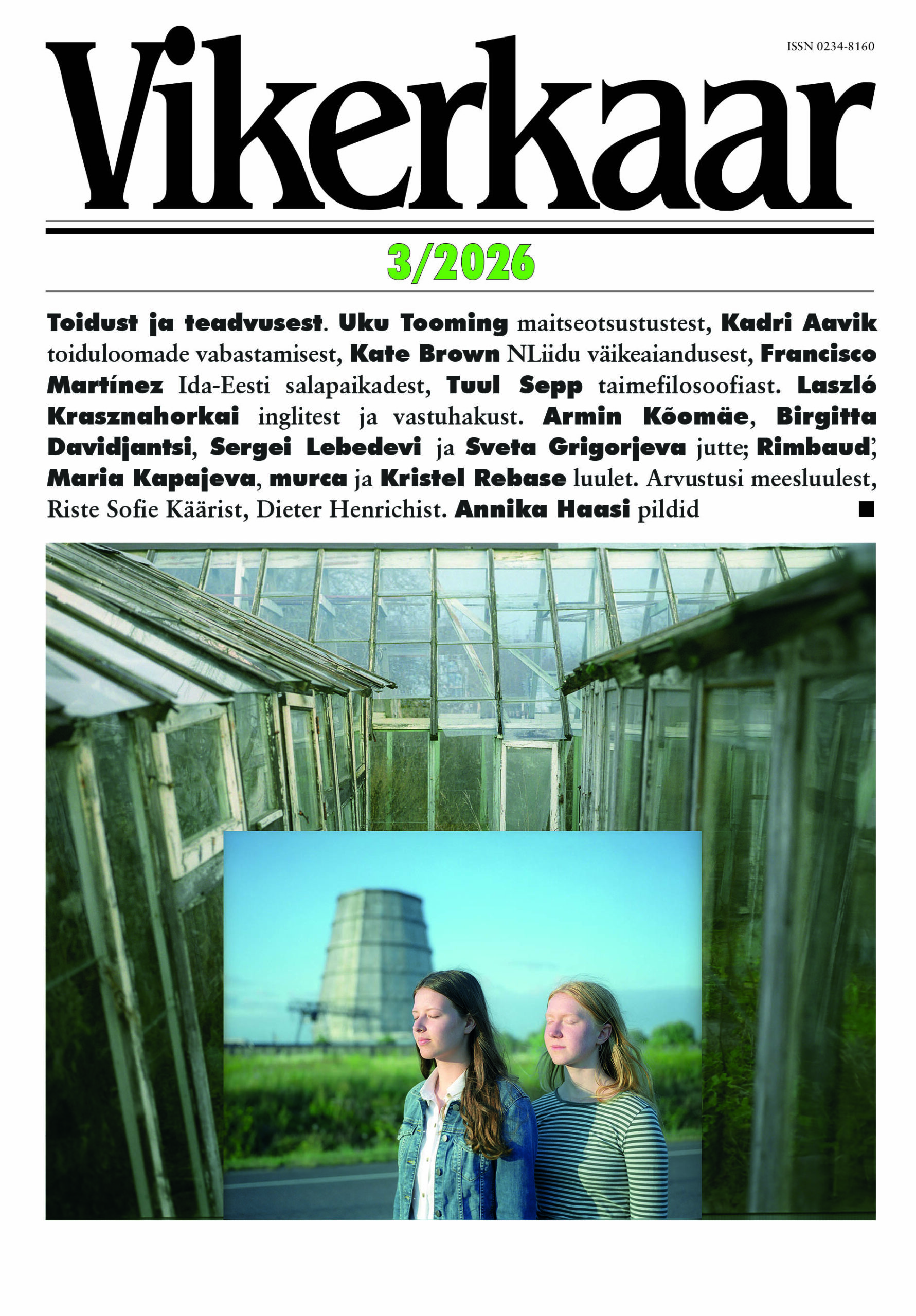 Toidust ja teadvusest. Uku Tooming maitseotsustustest, Kadri Aavik toiduloomade vabastamisest, Kate Brown NLiidu väikeaiandusest, Francisco Martínez Ida-Eesti salapaikadest, Tuul Sepp taimefilosoofiast. Laszló Krasznahorkai inglitest ja vastuhakust. Armin Kõomäe, Birgitta Davidjantsi, Sergei Lebedevi ja Sveta Grigorjeva jutte; Rimbaud’, Maria Kapajeva, murca ja Kristel Rebase luulet. Arvustusi meesluulest, Riste Sofie Käärist, Dieter Henrichist. Annika Haasi pildid.