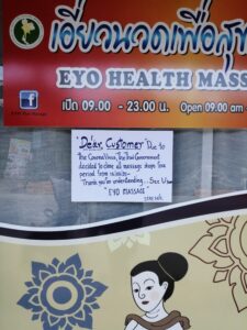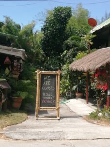Terviseohutuse piirangutele on erinevad asutused reageerinud erinevalt: ühel õhtul teatas meie lemmikkoht, et neil võib olla vähem kui kümme klienti korraga ja kõik lauad peavad olema üksteisest kahe meetri kaugusel. Eile teatas populaarne kohvik, et lubatud on ainult üks külastaja laua kohta ning tänaseks on enamik kohti lahti vaid take-away’deks. Teised kohad püsivad aga lahti niikaua kui võimalik. Kui tegu on Tai pereäriga, vaatab kohalik Euroopa kogukond selle peale vähem halvustavalt ja istutakse isegi maskideta veel mõnuga kohvikutes ja lobisetakse lauanaabritega – see oli ju kogu selle saare võlu ning sellest on raske lahti lasta!