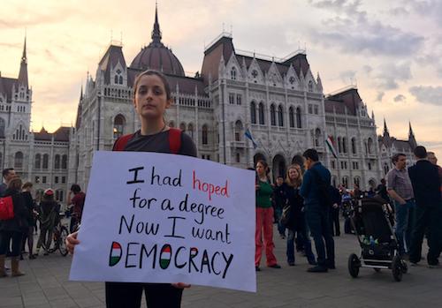 See seadus polnudki mõeldud täitmiseks, vaid ülikooli riigist välja sundimiseks. Muudatused võeti parlamendi poolt vastu erakorralise protseduuri käigus kõigest nädalaga, et piirata laiemat debatti, ning Ungari president kuulutas seadusemuudatused välja esmaspäeval.7 Rahvusvahelise akadeemilise kogukonna toetus Kesk-Euroopa Ülikoolile on olnud peaaegu üleüldine, sest Orbáni valitsuse sammud kujutavad endast selget ohtu akadeemilisele vabadusele ning ületavad piire, millest ükski riik ei tohiks üle astuda. Mõni päev enne seaduse vastu võtmist ning samuti selle vastuvõtmise päeval toimusid ülikooli toetuseks Budapestis suured meeleavaldused. Pühapäeval, just enne kui president János Áder pidi otsustama, mida seadusega teha, kogunes Budapesti tänavatele ja lõpuks parlamendi ette CEU-le toetust avaldama hinnanguliselt kuni 80 000 inimest. Arvestades, et CEU on väike ülikool, millest keskmine ungarlane ilmselt midagi kuulnud ei ole, on see väga suur arv ning enam kui kaks korda rohkem, kui algselt oodati. Orbánile lojaalne meedia sellest kas ei rääkinud või valetas (nt. et Soros tarnis protestijaid spetsiaalselt lennukitega kohale ja et meeleavaldus oli kohale tulnute arvu poolest läbikukkunud). Esmaspäeva õhtul jätkusid tuhandete osalejatega spontaansed meeleavaldused üle kogu linna ning kolmapäevaks on planeeritud edasisi demonstratsioone. Isegi kui see seadus, ükskõik mis kanaleid pidi, peaks jõudma põhiseaduslikkuse järelevalve kohtusse ja ükskõik kui suurt avalikku toetust ülikoolile ka väljendataks, pole kindel, mis lõpuks saab. Nüüd on kõigile teada, kui väga Orbáni valitsus tahab ülikooli riigist välja süüa ning isegi parimal juhul peaks ülikool edasi tegustema selle teadmise üha hämaramas varjus. Ning on vähe lootust, et järgmise viie aasta jooksul Ungaris midagi poliitiliselt muutuks.