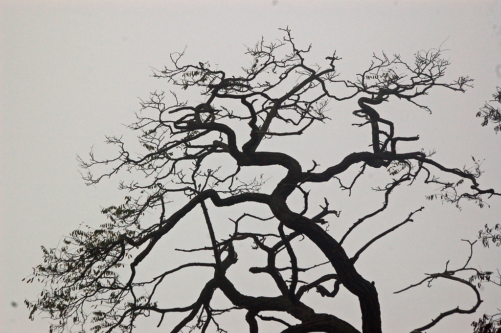 Ühel päeval toitu valmistades tuli Kuan Hsiule äkitselt meelde kord nähtud kummalise kujuga mänd ühel mäenõlval. Visioon oli nii elav, et üksiklane tundis sundust see kusagile jäädvustada. Sobiv paik oligi tegelikult käepärast: selleks passis hüti põhjapoolne lage sein. Kuan otsis välja oma värvid ja pintslid, valmistas need maalimiseks ette ning jäi siis keskendunult seina põrnitsema. Möödus pooltund, teine kolmas. Äkitselt haaras Kuan pintsli, kastis selle värvi sisse ja visandas mõneainsa täpse ning jõulise tõmbega puu tüve seinale. Edasine järgnes nagu rajuhoog. Näis, nagu välguks mehel korraga neli kätt — nii kiiresti ilmusid seinale puu oksad, okkad, koore konarused ja maapind puu all. Vaid mõni viiv ja pilt oli täiesti valmis — kaunis ja nii tõetruu, et tundus, nagu võiks puu okstes kuulda tuule vihinat.